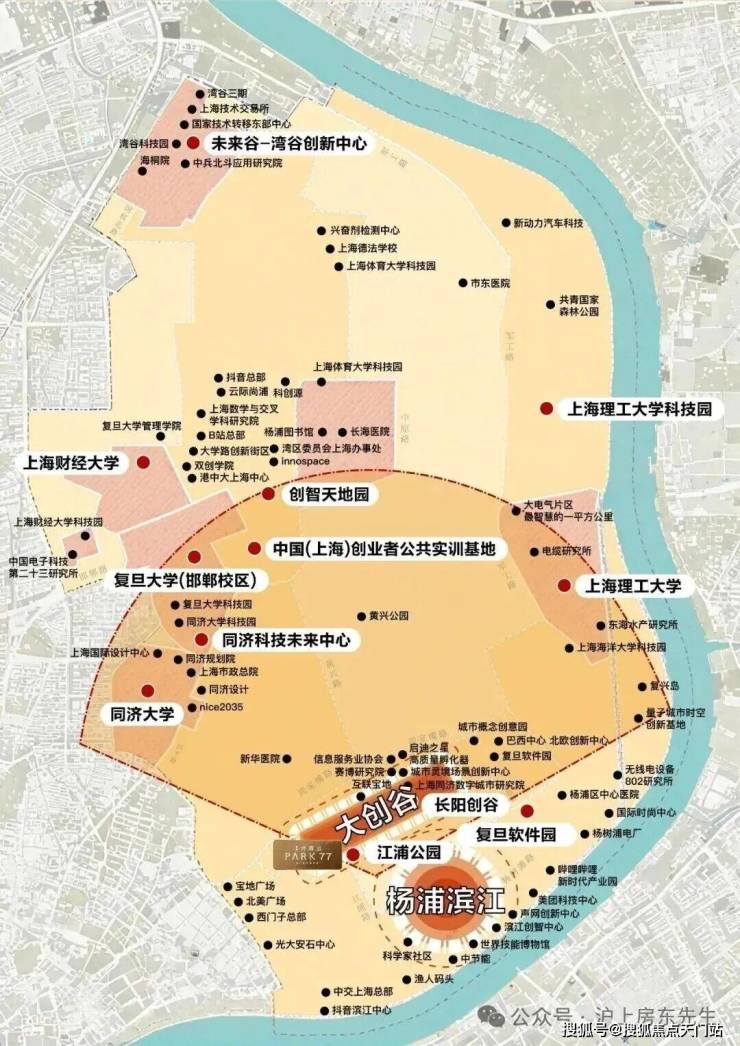 项目坐落于杨浦滨江“科创扇面”,这一带创新动能强劲、发展势头迅猛。区域周边汇聚了上海密度极高的顶尖高校资源,包括复旦大学、同济大学和上海财经大学;同时坐拥大连路总部集聚区、长阳创谷等成熟产业载体,以及正在快速崛起的杨浦滨江科创产业集群——美团、哔哩哔哩等互联网巨头预计将于2026至2027年陆续入驻。