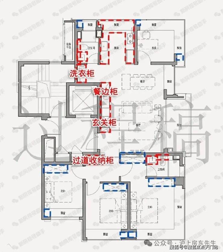 3、收纳升级up!红色线框部分为交付收纳柜,蓝色线框也是未来完全可以做灵活收纳的空间!细节打造上也是可圈可点!