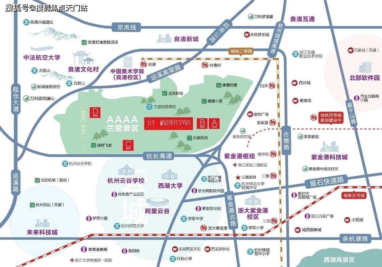 旁边地铁2号线,良渚站,白洋站,杜甫站,距离项目直线距离约1500米,无缝衔接1号、4号、5号等多条地铁线路景区,。