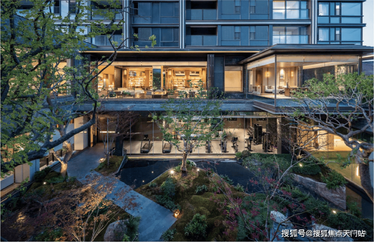 太行金景石层叠成丘,岭南古桩铁冬青与原生乌桕树相映成趣,瀑布落溪、溪转成涧、涧聚成池的生态景观,让“山水”不再是远观的画卷,而是可步入的秘境。沿连廊慢行,亦或者坐听流水如琴音婉转,清风携草木清香拂面,城市的喧嚣在此彻底消散。