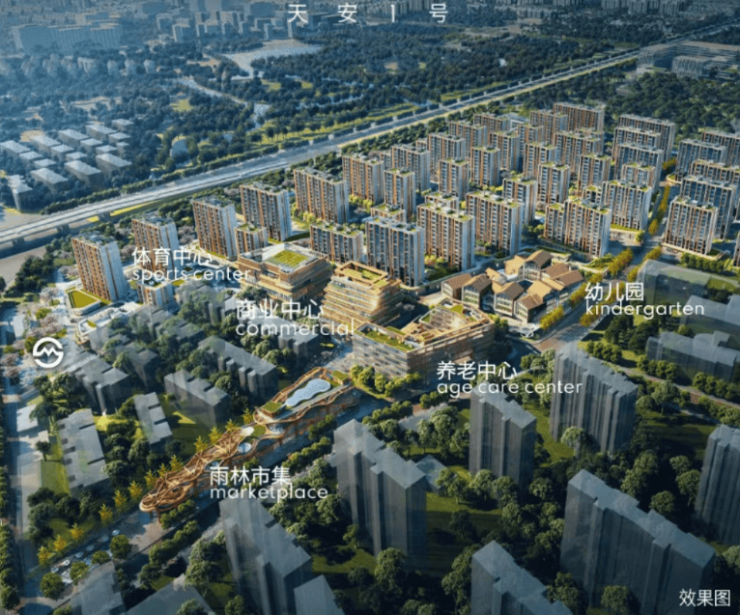 「天安1号」规划7座主题公园景观,以公园串联居住、运动、社交、休闲与购物的生活场景。