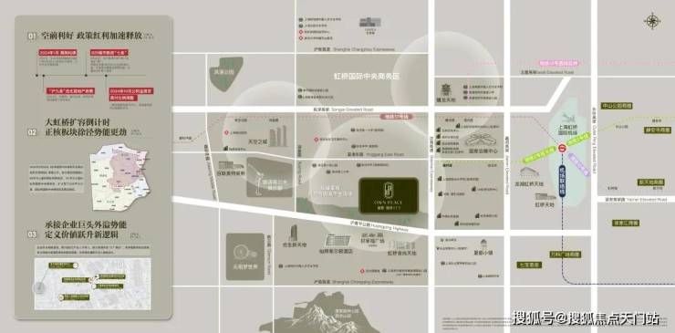 约3公里直达国家会展中心,以机场联络线、轨交2号线、17号线等立体路网,联动长三角核心城市,成为大虹桥辐射长三角的黄金锚点,无缝链接上海主城与江浙等经济强市。