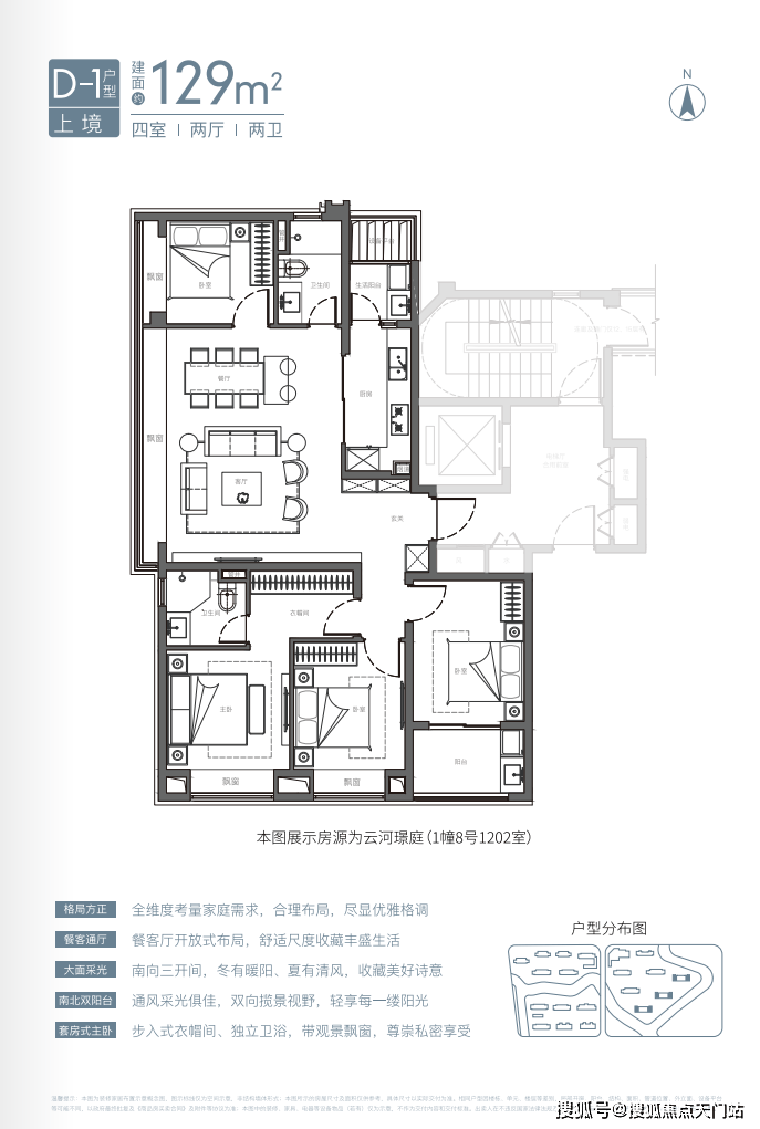 项目129平四房两厅两卫配置,功能齐全,满足终极置业需求;三开间朝南,向阳而居,6.1米侧厅布局,枕水而居,尽享滨水花园景观视野;开敞式书房,空间感升级,侧向飘窗,景观渗透更加充分。