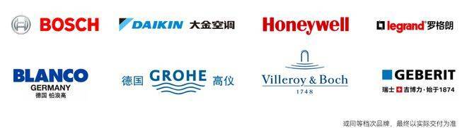 深研国际高净值人群生活方式与空间美学,采用国际一线精装品牌。采用大金中央空调,菲斯曼地暖,博世BOSCH油烟机、燃气灶、洗碗机、蒸烤一体机,霍尼韦尔新风系统、直饮水,厨房铂浪高水槽、龙头,入户有松下三合一智能门锁,罗格朗可视对讲系统,高仪龙头花洒,唯宝挂壁式马桶,吉博力静音同层排水系统等,细琢品质与细节,匠心勾勒美好生活,让家经得起时间的淬炼