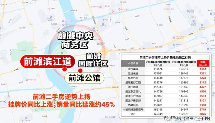 而前滩滨江超级完整体,在2025年上海楼市中交出了惊艳成绩单——当约98%的板块挂牌价同比下降时,前滩逆势“量价齐升”,走出独立行情。