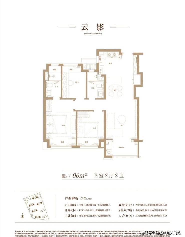 约 96㎡的 3 房 2 厅 2 卫户型,空间布局合理,每一寸空间都得到极致利用,毫无浪费。三个房间大小适中,满足家庭成员的居住需求。客厅宽敞明亮,与阳台相连,让阳光与清风肆意穿梭,为生活增添惬意与舒适。