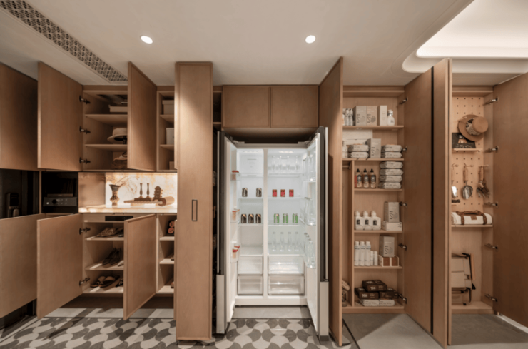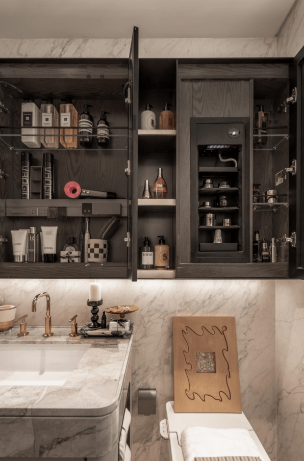 厨房更是堪称美食达人的天堂,集成一系列多功能调味拉篮、定制谷物抽屉等,收纳有序,油盐酱醋间的分类放置烦恼一次性得到解决,琐碎繁杂不再。