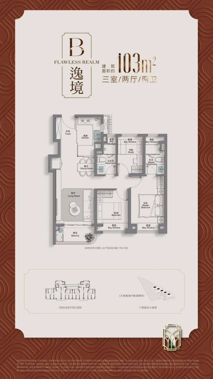 建筑面积约95/105㎡三房,进阶改善绝版“三阳台”户型