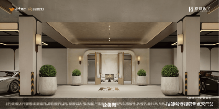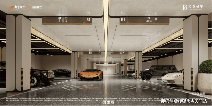 地下大堂,则以温润的白玉石材营造沉浸式归家体验。精奢车库的车行道地面采用水磨石、主体车道全吊顶设计,每个车位上方还都有LED环绕灯吊顶,让平凡的日常场景成为尊崇身份的暗语。
