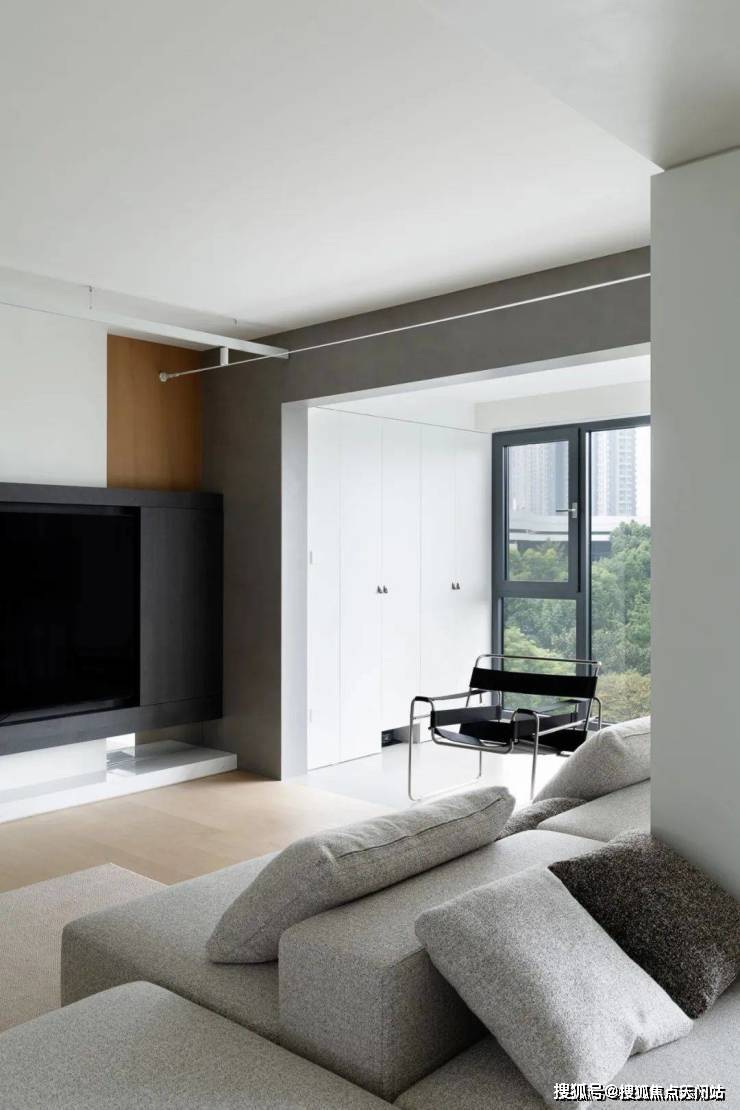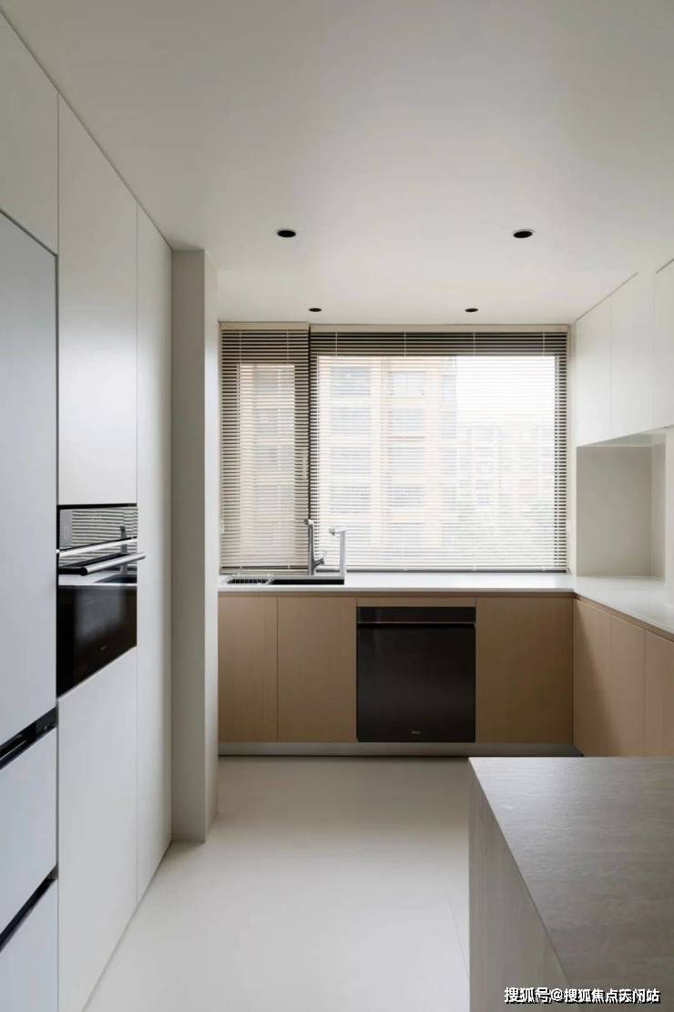 拆除北阳台的移门,通过消解传统分区实现厨房和餐厅的比例再分配。储物和电器设备整合构筑了从入户到餐厨转角的序列关系。静安玺樾售楼处电话:400-118-3159