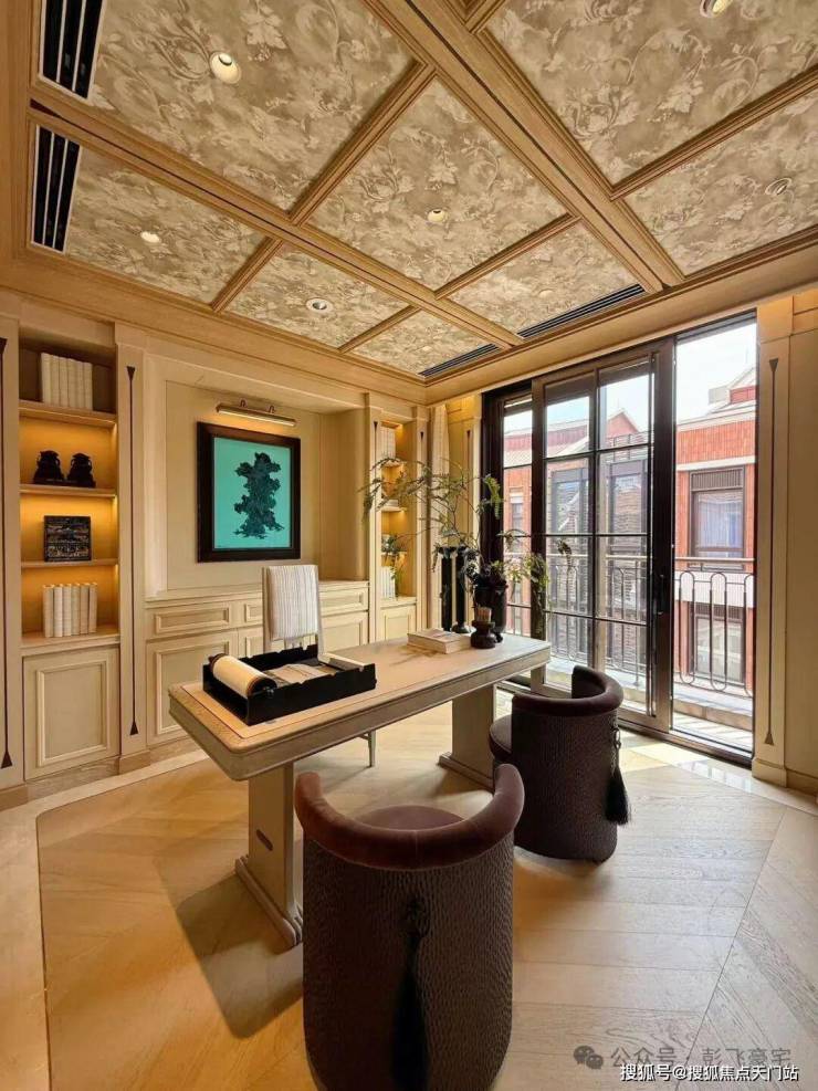 意大利金钻、复古红洞石等,铺陈风貌别墅的厚重质感;手工捶打铜门,每一道锤纹,都是手工匠人的心血。邻里两户双重墙体设计,保障各自的私密与尊崇。