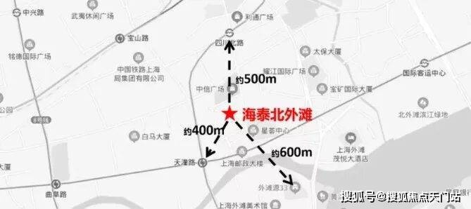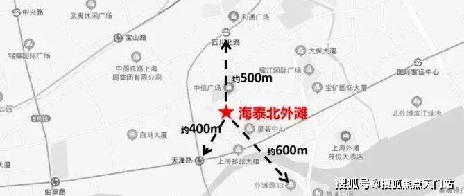 从地理坐标看,海滩北外滩直线距离外滩源仅600米,步行可达外白渡桥、上海邮政大楼等海派文化地标;