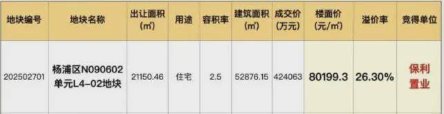 上海四批次土拍中,杨浦区一地块以 26.3%的高溢价率成交,楼面价高达80199 元 /㎡。而在此之前,北蔡楔形绿地新宅地出让,最终以高达 40%溢价率、7.14万/㎡楼板价成交,“面粉贵过面包” 已成常态,起售价几乎都会超过 10万+,内中环的置业门槛可谓一增再增。