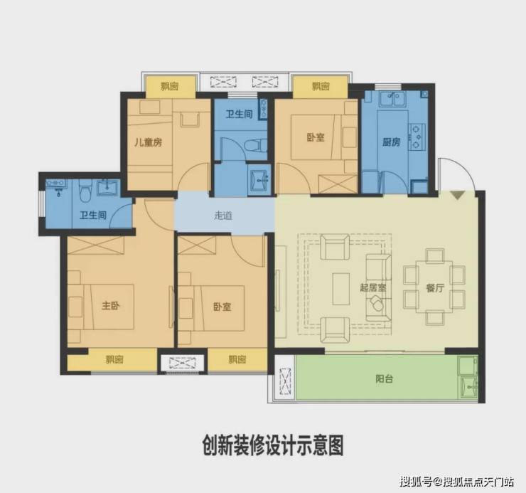 如果想要纯正的私密的4房,可参考上图创新装修设计示意图。