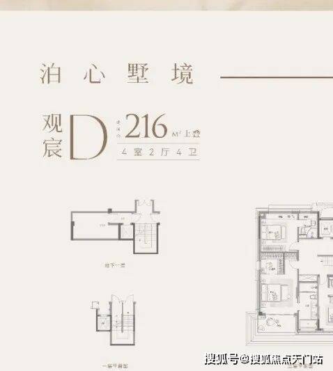 户型特点: 下叠边套,南向面宽约9米,客餐厅同宽约5.8米,空间开阔。一楼设南向卧室,采光好且视野佳。二楼为三套房+主卧总统套房设计,主卫南向,可容纳浴缸和双台盆。地下室方正,附赠采光井,利用率高。