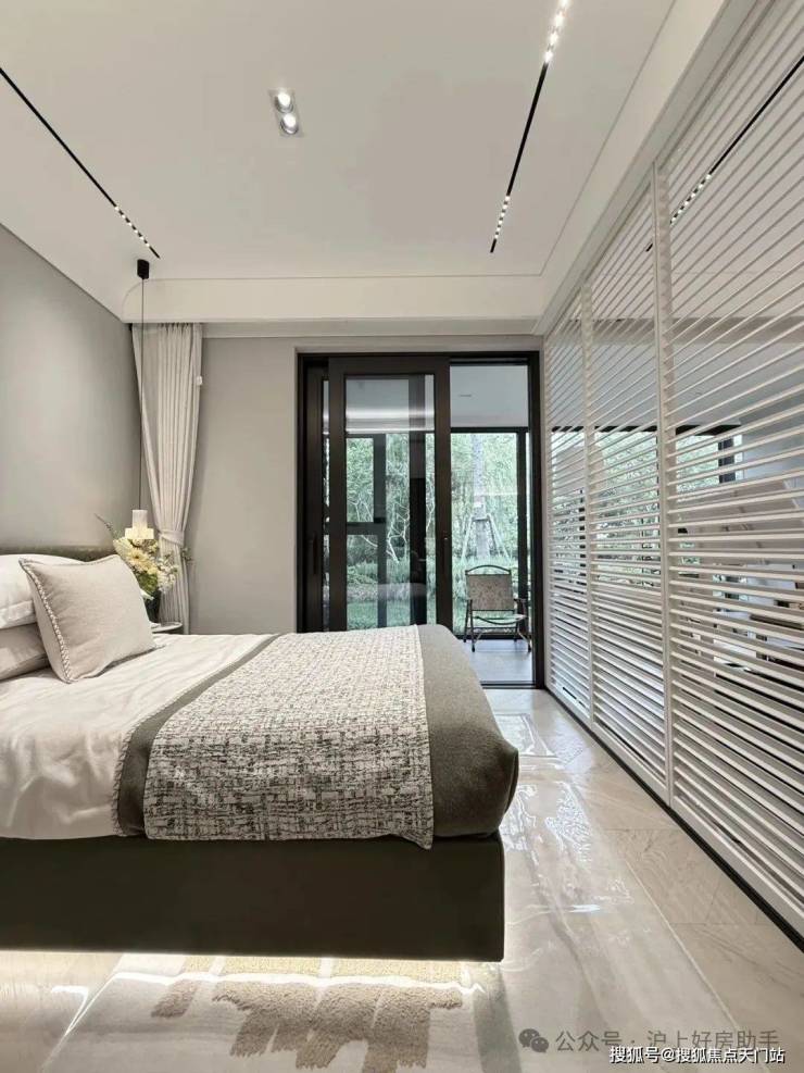 其中主卧的270°转角飘窗就有约5.7m²,通过与外立面的结合,直接做了梳妆台和储物柜,拓展了飘窗的实用性。
