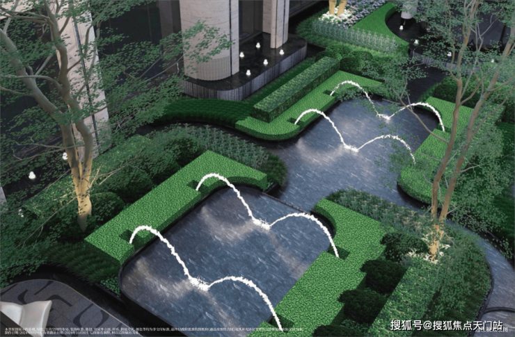 中央休闲庭院空间,一场浸润灵感的艺术水景,自然与潺水和鸣间,分享生活的乐趣与奇妙。