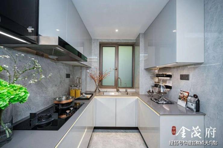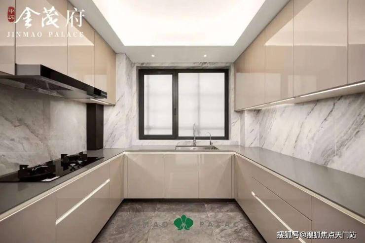 此外,金茂府的很多设计细节更加令人称赞,如室内多处采用拉丝金属及透光石装饰、厨卫使用大尺寸的岩板和瓷砖、就连墙纸都是独家定制有更加厚实舒适的手感……