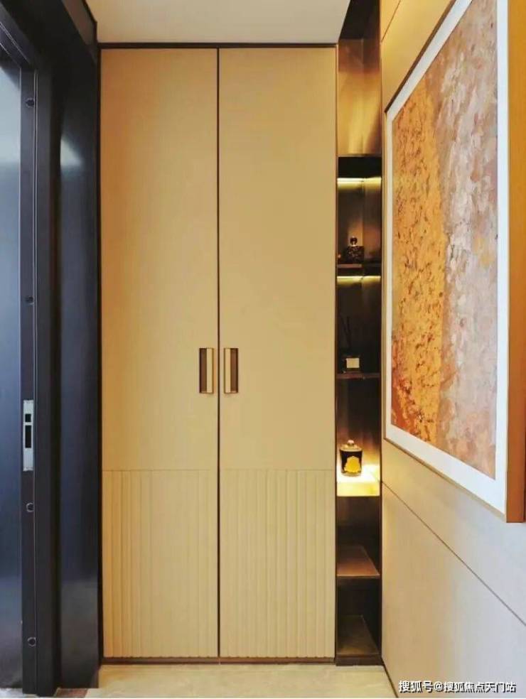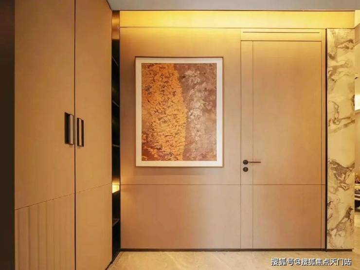 拉丝金属的门套、飞利浦智能门锁,温润透光石的壁龛,高贵大气扑面而来。