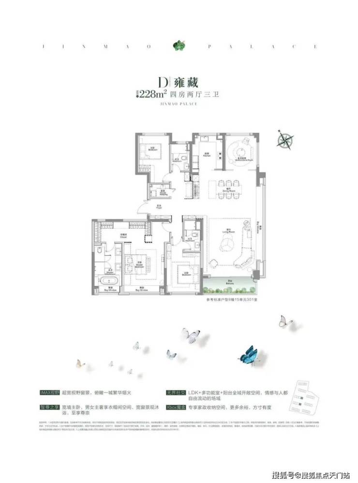 项目建面约228平的户型,是板块内少有的大面积产品!