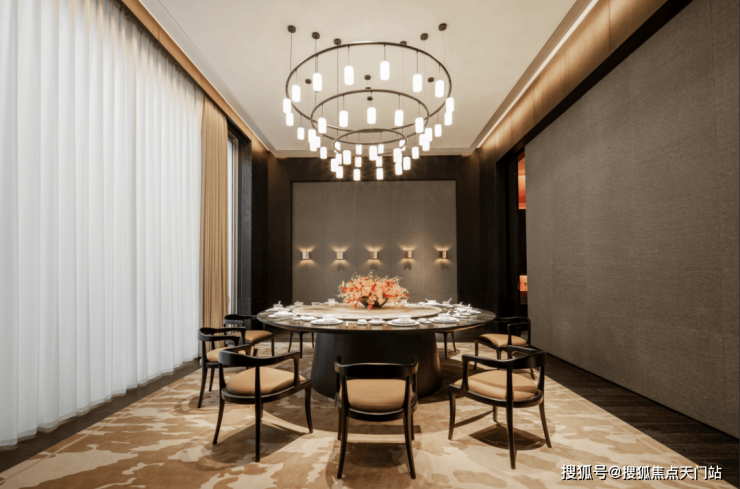业主们还能在 精致私宴厅进行邻里交流 ,举手投足间尽显优雅品味,这样的空间设计既有排面,也很实用,相当于业主的第二客厅。