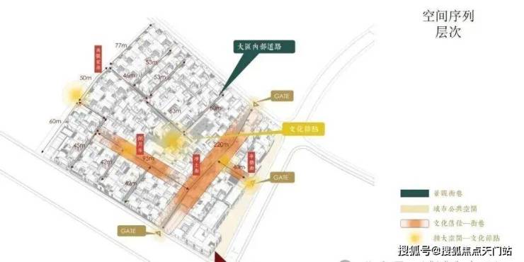 士林润园社区规划可分为蓬莱路城市公共景观以及社区内部景观两个部分,其中市政绿地衔接于上海2035城市总体规划中“蓝绿丝带”的上位条件要求,社区内部街巷空间形成空间序列形成递进的层次,将归家体验的序列依次展开,形成城市街道→入口(一级门户)→街巷→节点空间→里弄门(二级门户)→合院入户(三级门户)的方式,基本可保证大多数住户可体验到两重以上的空间递进。