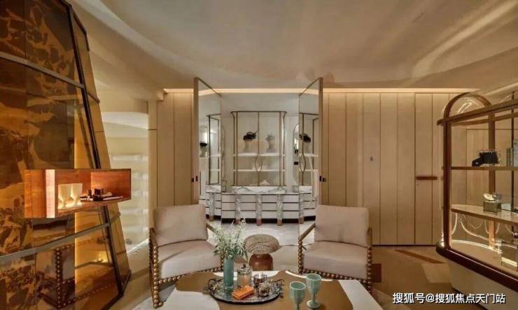 在这里,男女主人可尊享各自独立的沙龙空间,也分别配有珍宝阁和休闲区,可展示自身的爱好与收藏,可与好友相约小聚下午茶,也可享受独酌。这无疑是家中可唤醒感官的角落,让自身的品格与态度得以安放,让家空间与居者,相互滋养,相互成就。