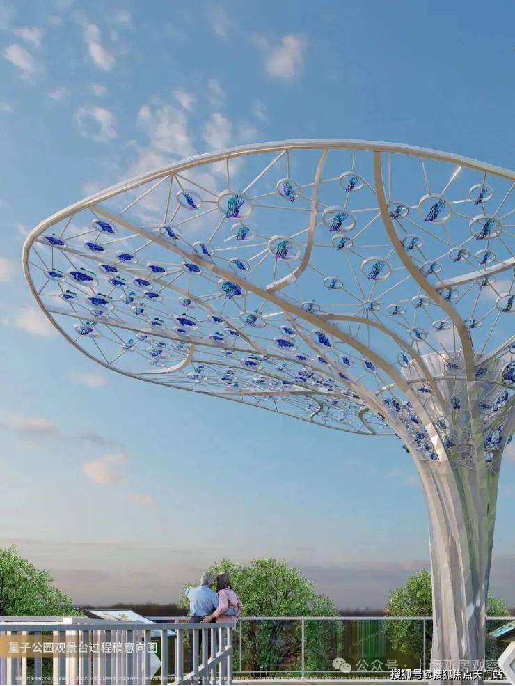 不同于普通社区公园,量子公园以多重维度立体空间,打造了立体式二层观景台,观景节点雕塑美轮美奂,像极了elsa的裙摆,简直是大小孩、小小孩们的梦幻观礼台。