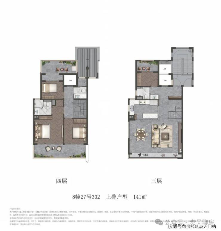 项目叠墅包含 建面约141㎡上叠和建面约150㎡下叠