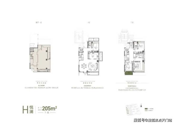 下叠:约5.45米可做跃层地下室,多个采光天井,还有南花园。