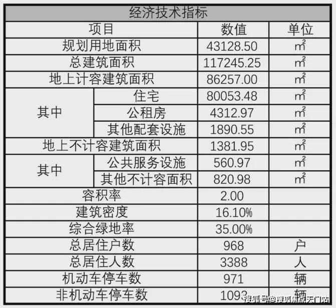 规划共设968户,商品房890户,保障房72户;机动车停车位979个。