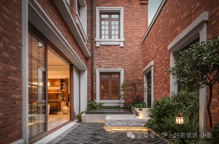 每户配置30-100㎡私家庭院,以"通透格栅+景墙漏窗"取代传统石库门的封闭木门。