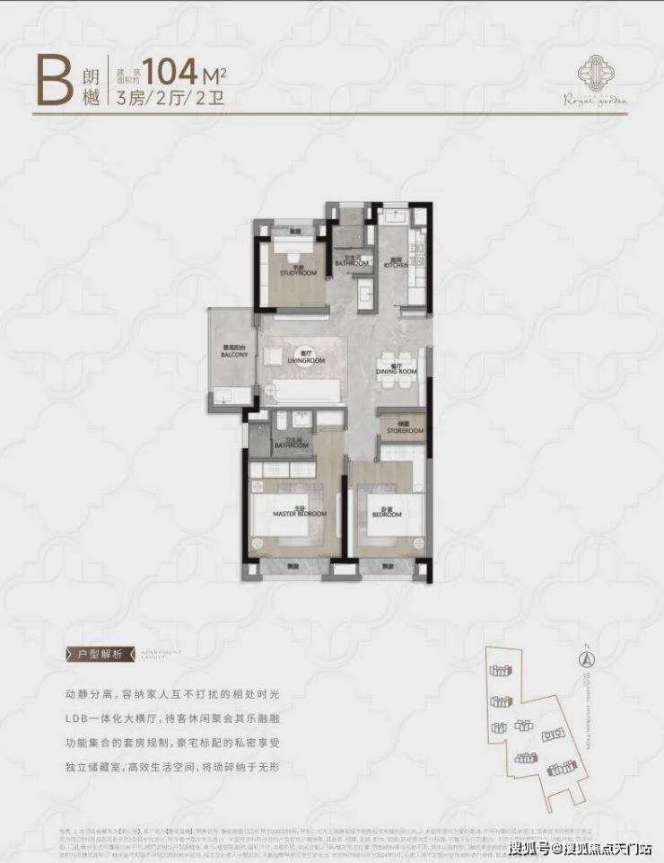 项目预计加推的三期房源,主要包括建面约98-107㎡2-3房。看点有三: