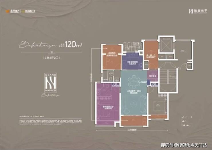 建面约120㎡户型整体采用了罕见的 多阳台+贯通梯一梯一户设计!是双新政后 内中环的首个!得房率也将高于双新政后同样楼层一梯一户的产品!单凭这两点,已然 超前于绝大多数如今的产品!