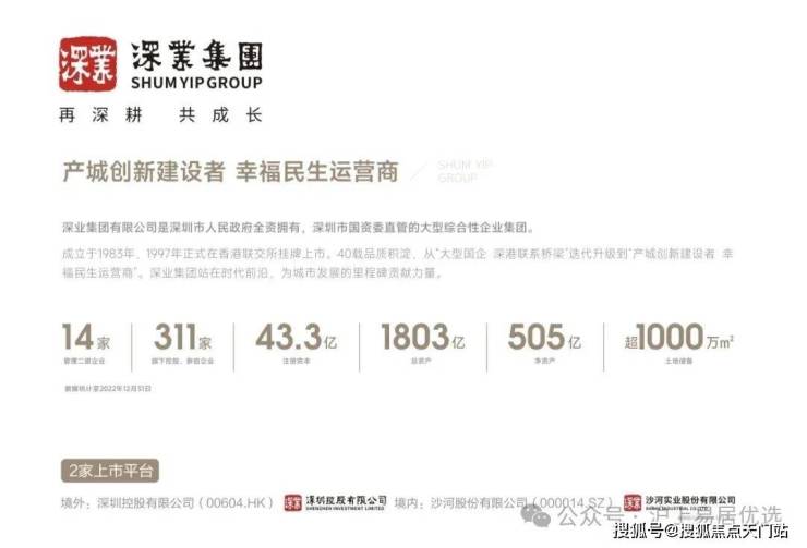 项目的开发商是拥有️雄厚开发实力的国企——深业集团,是深圳市人民政府全资拥有,深圳市国资委直管的大型综合性企业集团。
