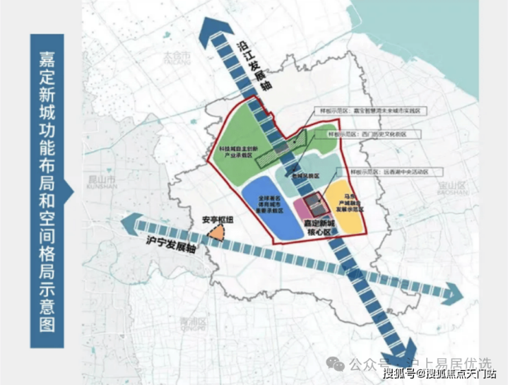 在嘉定构建“一核一枢纽、两轴四片区”的新格局中,安亭枢纽,同时占据了枢纽和沪宁发展轴。