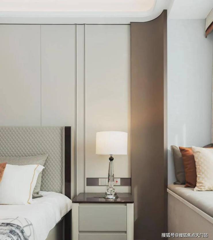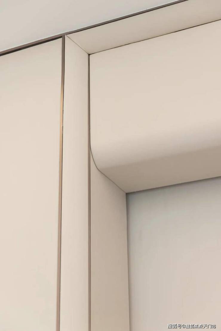 全弧美学:让空间告别 “棱角”踏入样板间的第一秒,你会发现这里 几乎“看不到一个直角”:墙面转角、吊顶边缘、门套线条,甚至石材台面与柜体边缘,均以流畅圆弧替代生硬直角。
