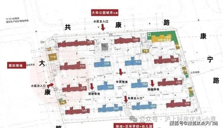 整个地块,由15幢16-18F的高层组成,其中18F的楼栋为保障房。整个小区共计957户。可以看到,小区的排布比较传统,车位比也比较充足。不过从设计图上来看,小区并没有做人车分流,仅有中央绿地车辆无法通行,社区配备了常规的活动场地。社区配置现在看来,没什么太大的亮点。本地块商品住房用地的中小套型住房供应比例为70%