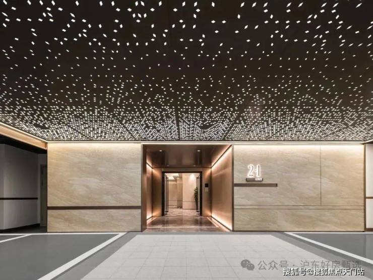 地库的星级仪式:白金砂石材铺装,古铜金属镶边,星光穹顶营造银河归家仪式