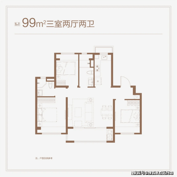 其实有不少小伙伴曾经向我吐槽过99㎡的百平三房,大多高层75%左右的得房率使得百平三房的套内使用面积仅有75㎡左右,性价比非常低!而且大多百平三房的北房间非常鸡肋,基本上只能当做书房,放个床甚至还要结合飘窗一起设计。