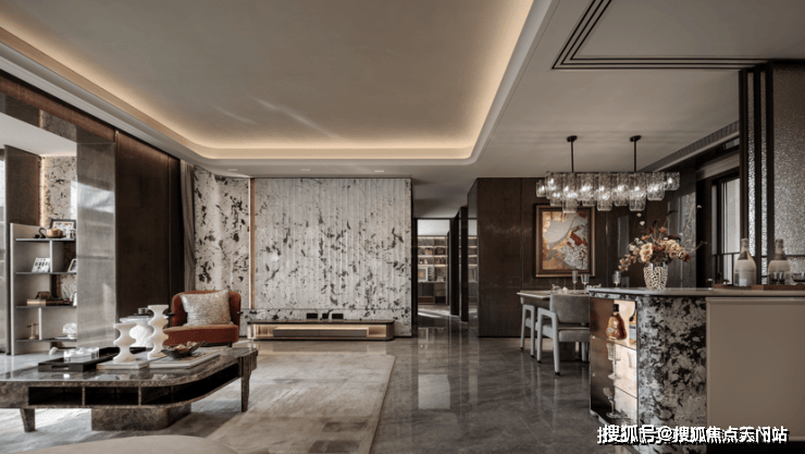 从步入社区大门开始,约70米超大尺度门庭、奢华酒店般的港湾式落客,就将仪式感便顶格拉满;星级酒店大堂,内部多处装置融合非遗技艺美学,生活在尊贵与艺术之间巧妙平衡;进入下沉式中庭花园,归家路上移步异景;单元入户入口延续奢华酒店质感,采用奢石与铝板叠加的奢华设计,碰撞法式圆润线条,仿佛艺术殿堂。