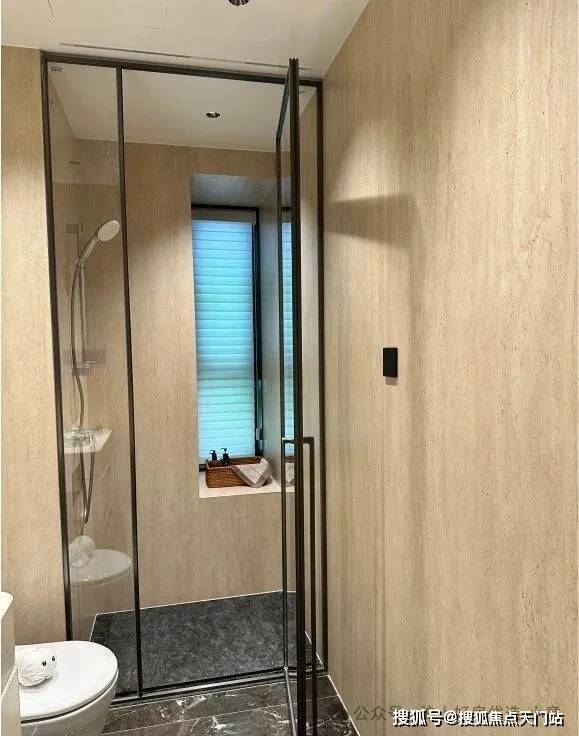 次卫则是采用不同风格,墙面统一采用米洞岩板、地面为深咖色瓷砖,黑金配色风格区别于看多了的海派设计,眼前一亮: