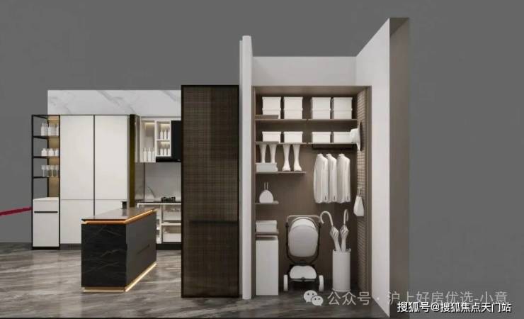 "分户s墙"设计在分户墙处增设“凹型空间",“冰箱外移"增加厨房操作台面和收纳空间,创造更合理的餐厨桌台动线。