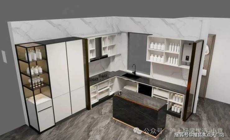 收纳空间全部都是来自博洛尼专属定制(或同等品牌),真正做到拎包入住、省去后期定制比价的烦恼;而在收纳空间之外,外滩源著在用料上同样可以称得上卷王——项目厨房台面是全进口的西班牙DEKTON品牌: