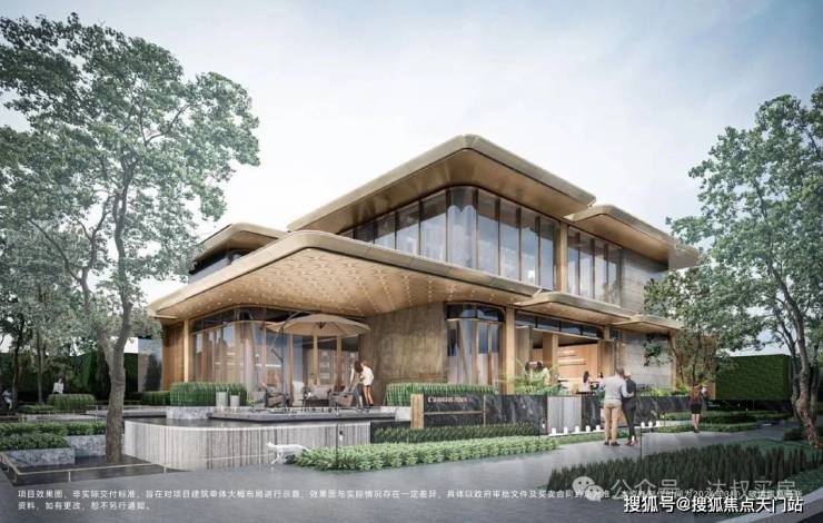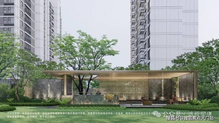 社区建筑以现代简约的风格,搭配有序的横线线条,打造有韵律感的大框秩序,米白色为主并搭配一定香槟金暖色调,创造和谐城市色彩。
