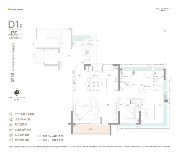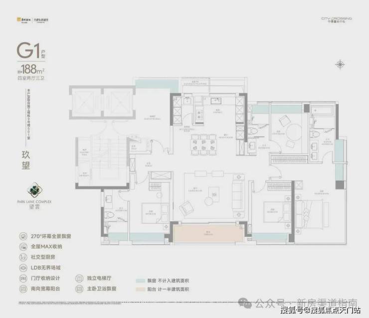 而在户型设计方面,建面约188㎡的4房产品,更是做了全面的超配。