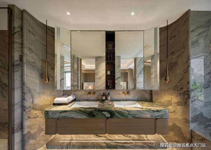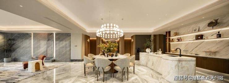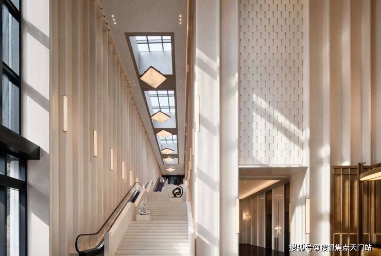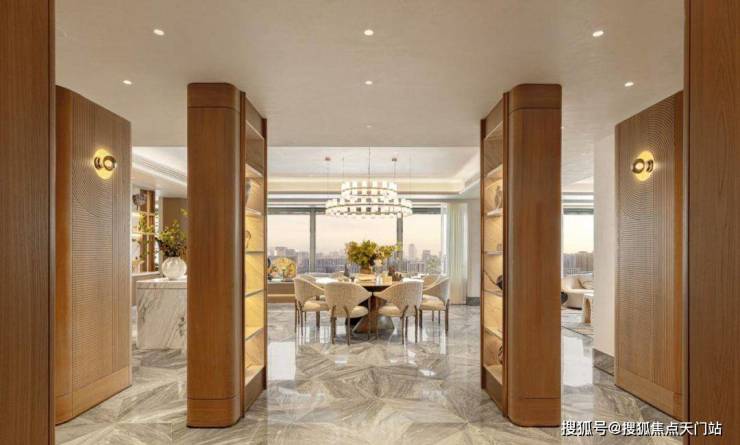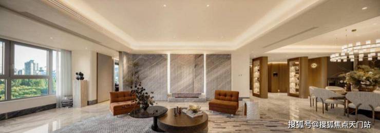 豪宅中,会所+泳池已成为市场标配,但是中兴傲舍却将之与艺术融合,把艺术变成了生活的一部分。14.5米超高挑空的归家大堂,搭配三大园景礼序和七重风雨连廊,从进门就仪式感爆棚。