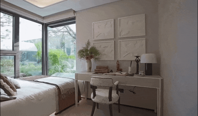 结合局部弧形玻璃与超大窗墙比,真正实现了“引景入室”,让家变成公园的观景台,重新定义了居住的视野界限。
