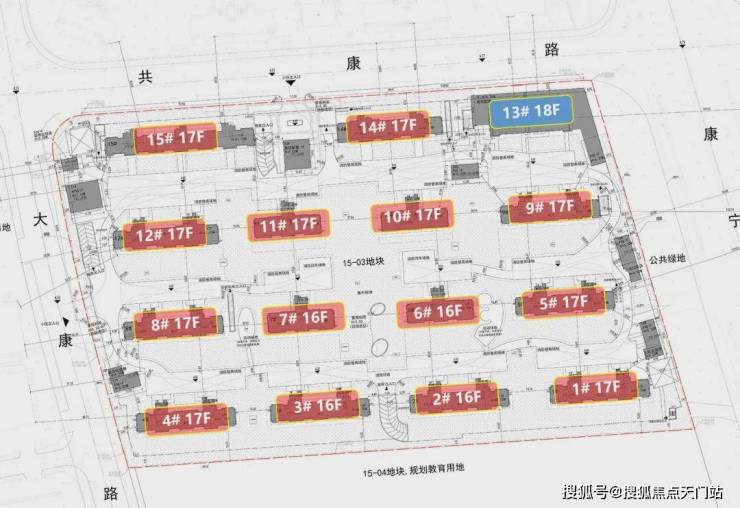 整个社区由 4栋16层、10栋17层小高层 组成;约 2.2的容积率, 低于市面上常规的2.5容积率的小区。栋距更宽阔,视野无遮挡。