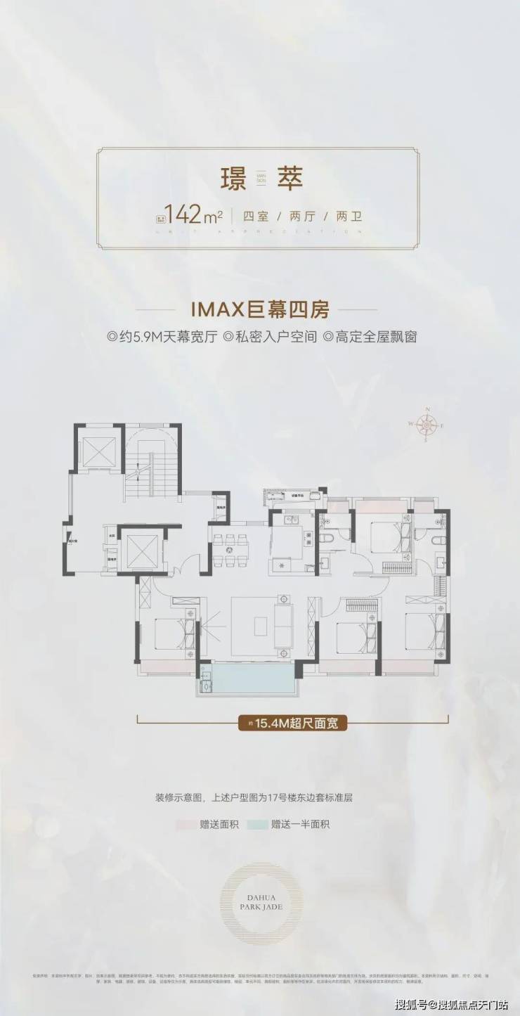真正一步到位的改善型4房产品,大横厅的设计,四开间朝南+大横厅,约15.4米的南向面宽堪比别墅。